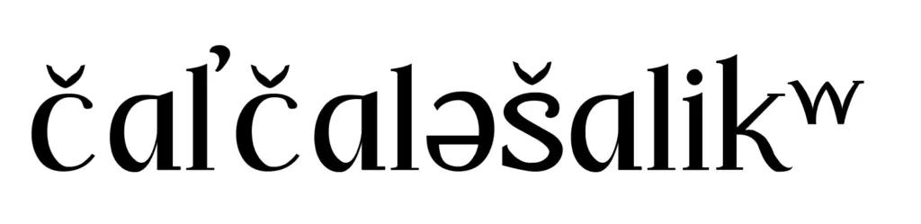 Below is an Muckleshoot language and audio representation of the word CaleCalsika :