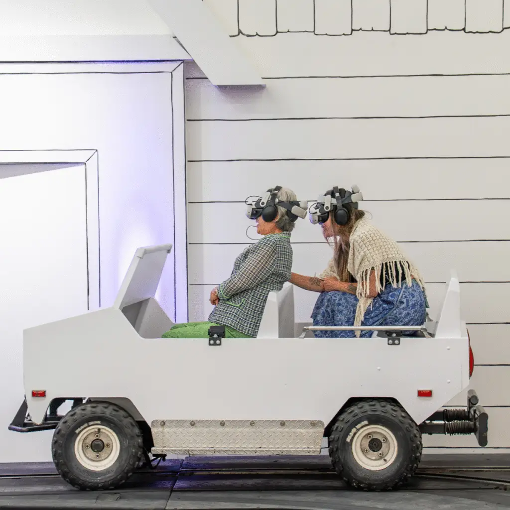 Virtual reality is here to stay and with it comes a new generation of artists creating dynamic immersive experiences. VR Monster Truck is an adapted amusement park ride with nearly 200 feet of track and three electric trucks that pull visitors through a computer-generated landscape. This kiddie ride might travel at one mile an hour, but the experience is shocking, exhilarating and truly out of this world. Seattle-based Brent Watanabe is our first featured digital artist, and is certain to be the ride that the art world is not prepared for. Our visitors enter at their own risk and watching their experience might be an equally rewarding spectacle.