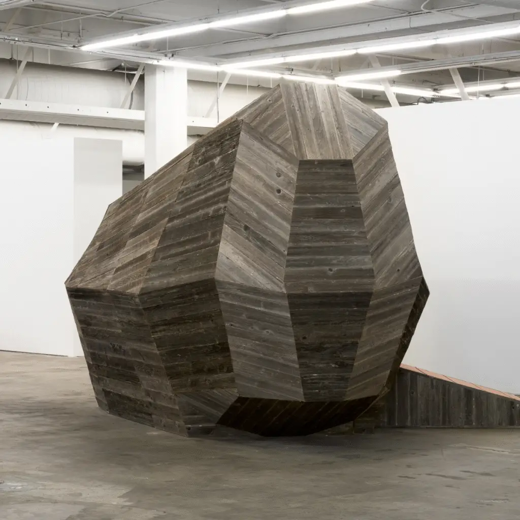 Over the years, Zack Bent’s practice has bounced between the disciplines of photography, video, sculpture and installation. Throughout his various projects, sculptural forms that imply shelter and enclosure have been ever present, though rarely functional. In Reliquary, a viewer first encounters a weighty mass- angular and organic- sitting quietly in the space. It is deeply grounded yet tilting and leaning, held up by its own substance. The surface is covered in old cedar, both new and weathered, bearing an unknown history. Through further investigation, an entry can be discovered that invites viewers to wander up a soft, pink-hued ramp into its ribbed interior. Inside one finds potential spots to sit, recline or study with alcoves of illumination. Here one might sense echoes of home, but this shelter is more like a rest stop, holding the possibility for respite, reflection and interaction.