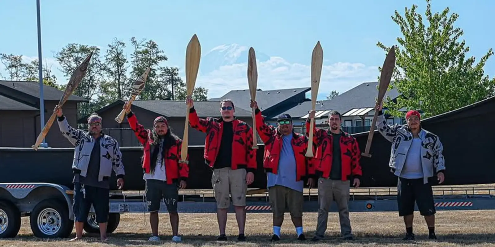 Witness artisans from Muckleshoot Tribe perfoem dugout canoe carving practice and craft